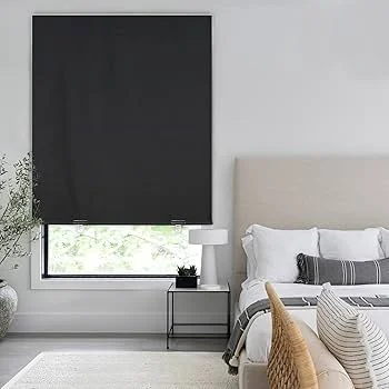 LazBlinds 100% Blackout Roller Shades provide complete privacy and light control. With a no-tools, no-drill installation, these cordless blinds are perfect for any window, offering a sleek and modern look.