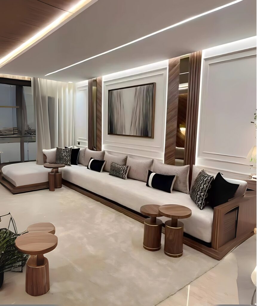 The Linear Majlis Sofa brings modern Arabic style into your room with its simple, elegant design. This sleek piece fits perfectly against your walls and is perfect for homes in Abu Dhabi. It offers deep comfort, custom measurements, and a sleek design that complements both villas and flats.