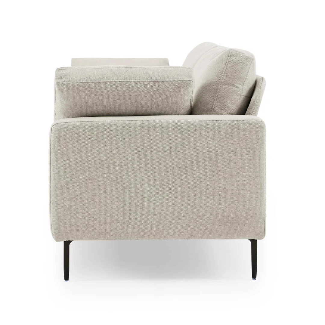- Square arms with stitch detailing and coil‑spring cushions