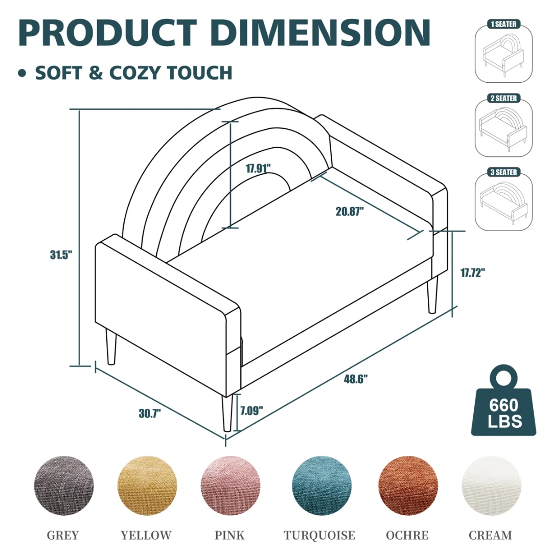 Modern 2-Seater Loveseat Sofa – Small Couch with Side Pockets & Cushions for Bedroom, Office, or Living Room